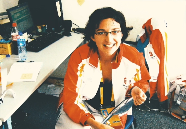 讓蒂擔(dān)任2008年北京奧運(yùn)會(huì)的法語翻譯時(shí)的照片。