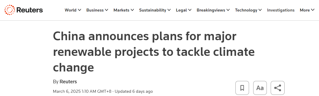 據(jù)路透社報道,中國政府5日宣布,將推出一系列重大可再生能源項(xiàng)目,力爭在2030年前實(shí)現(xiàn)二氧化碳排放峰值,并在2060年達(dá)成碳中和目標(biāo)。