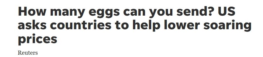 “特朗普一邊打關(guān)稅戰(zhàn),一邊討要雞蛋。要不把關(guān)稅戰(zhàn)停下,我們再談雞蛋?”