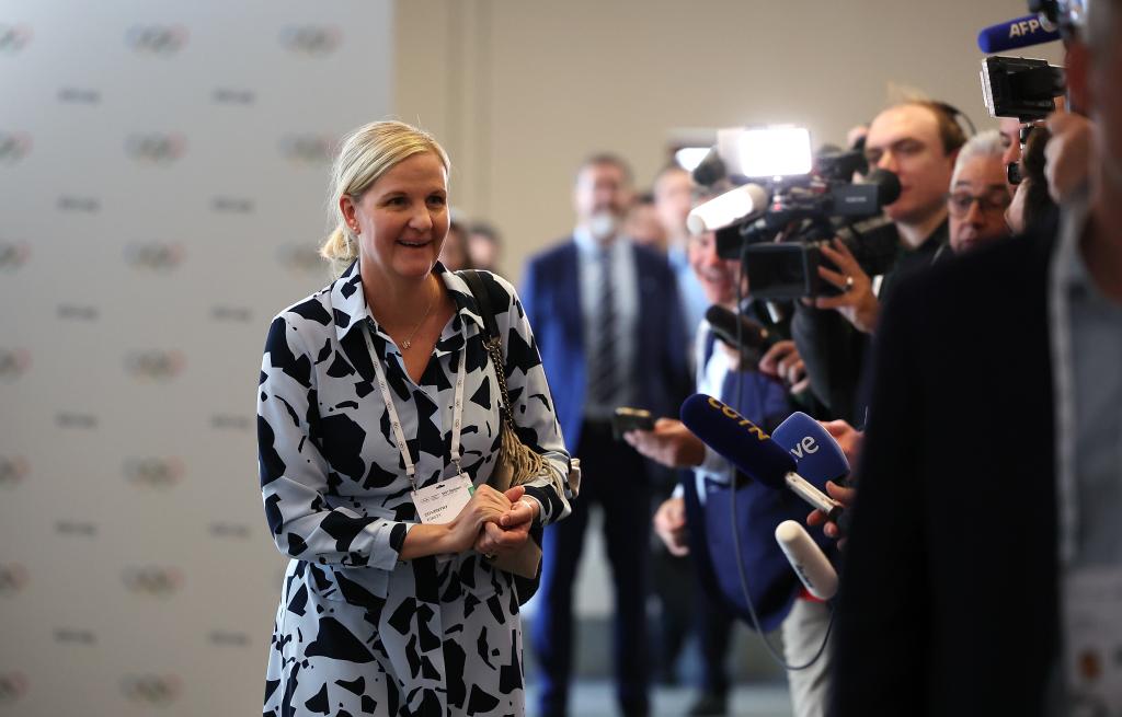 3月19日,國(guó)際奧委會(huì)執(zhí)委、國(guó)際奧委會(huì)主席候選人柯絲蒂·考文垂在會(huì)后離場(chǎng)。新華社記者 曹燦 攝