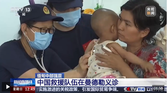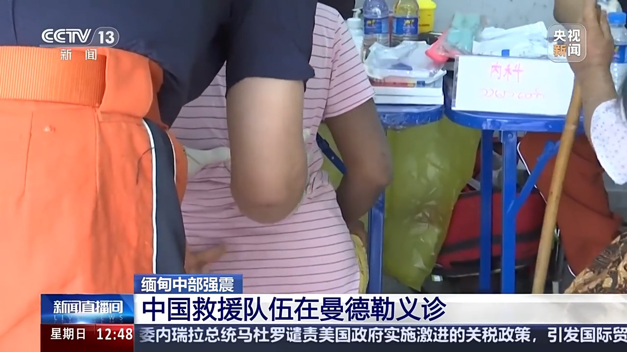 總臺(tái)央視記者 唐國(guó)榮:這里是緬甸曼德勒的多金堰地區(qū),來(lái)自中國(guó)救援隊(duì)、中國(guó)國(guó)際救援隊(duì)和中國(guó)香港救援隊(duì)的醫(yī)療隊(duì)員們,來(lái)到這里為緬甸地震中受災(zāi)的人員開(kāi)展各種醫(yī)療救助服務(wù)。