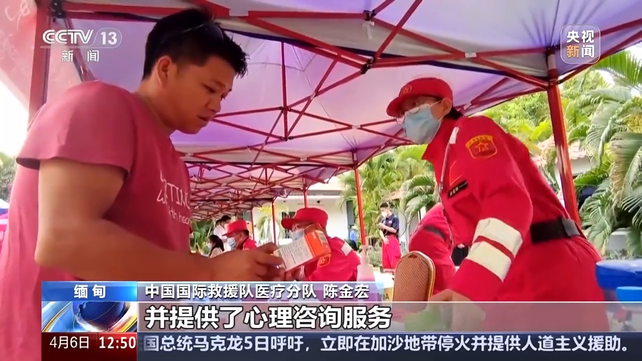 中國(guó)國(guó)際救援隊(duì)醫(yī)療分隊(duì) 陳金宏:今天我們來(lái)到這里,開(kāi)展內(nèi)外婦兒診療,進(jìn)行防疫消殺的培訓(xùn),并提供了心理咨詢(xún)服務(wù),下一步結(jié)合曼德勒市傷情災(zāi)情,我們會(huì)持續(xù)為當(dāng)?shù)貫?zāi)民做好醫(yī)療服務(wù)。
