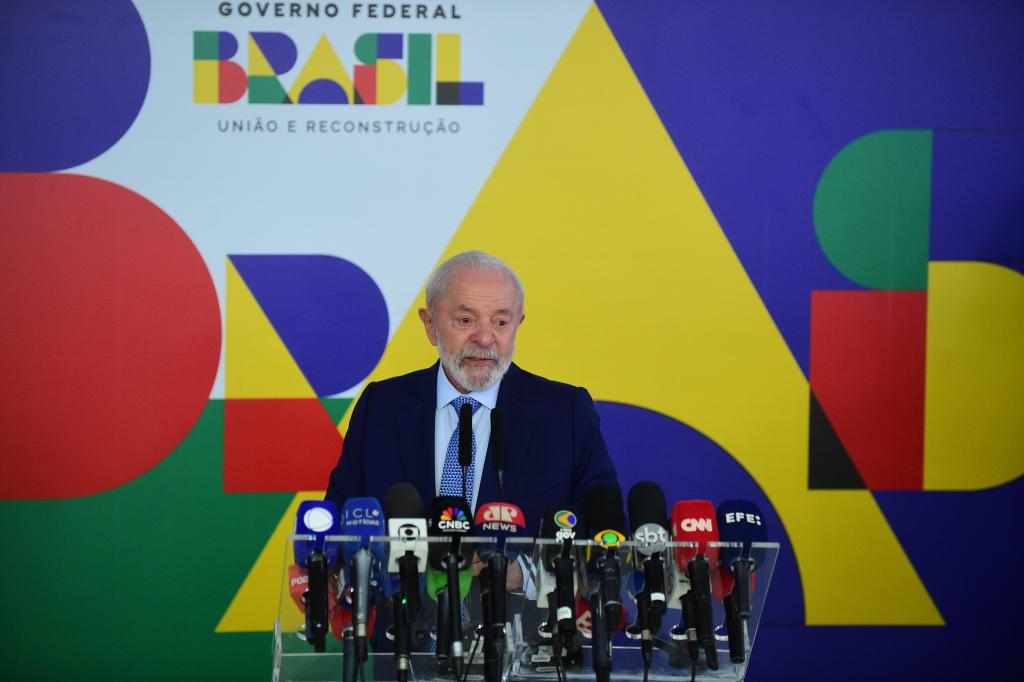 1月30日,巴西總統(tǒng)盧拉在首都巴西利亞總統(tǒng)府參加記者會。新華社發(fā)(盧西奧·塔沃拉攝)