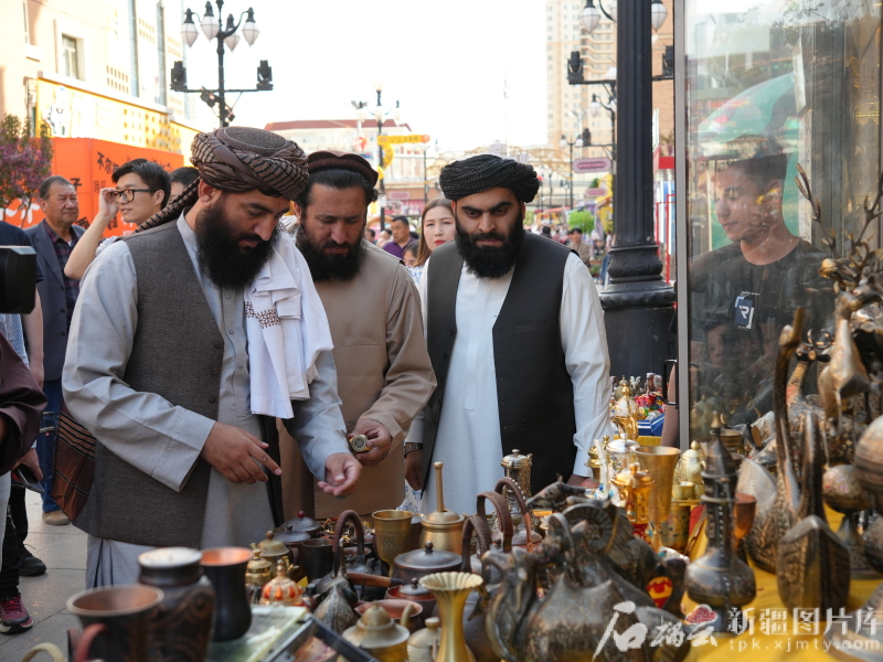 訪華團(tuán)漫步在新疆國(guó)際大巴扎。石榴云/新疆日?qǐng)?bào)記者 閆嘯天攝