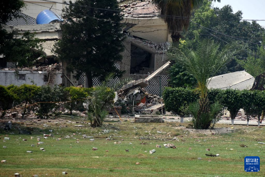 這是5月7日在巴基斯坦東部旁遮普省謝赫布拉地區(qū)穆里德蓋鎮(zhèn)拍攝的遭印度導(dǎo)彈破壞的建筑。新華社發(fā)(薩賈德攝)