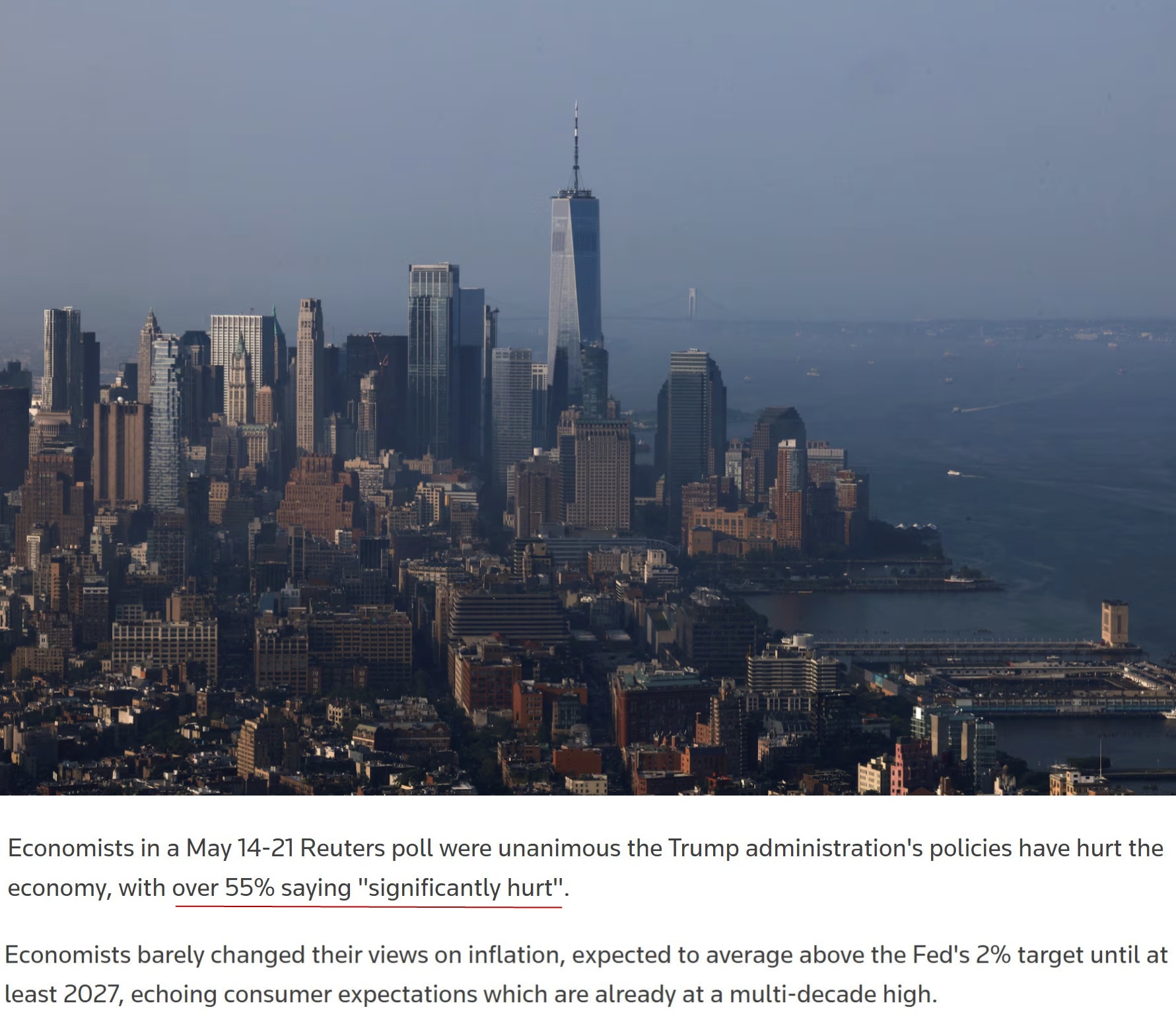 美國(guó)政府4月10日宣布暫緩對(duì)部分貿(mào)易伙伴征收“對(duì)等關(guān)稅”90天的期限即將過半,路透社近日公布的面向經(jīng)濟(jì)學(xué)家的最新民調(diào)顯示,受訪經(jīng)濟(jì)學(xué)家一致認(rèn)為,白宮的相關(guān)政策對(duì)美國(guó)經(jīng)濟(jì)造成了負(fù)面影響,其中超過55%認(rèn)為“造成了重大傷害”。