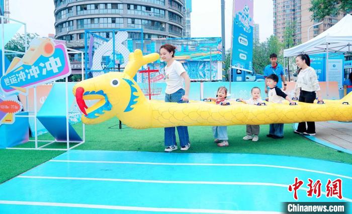 5月30日,市民游客在成都世運(yùn)會“跟著賽事去旅行”武侯站體驗趣味旱地龍舟。成都世運(yùn)會執(zhí)委會供圖