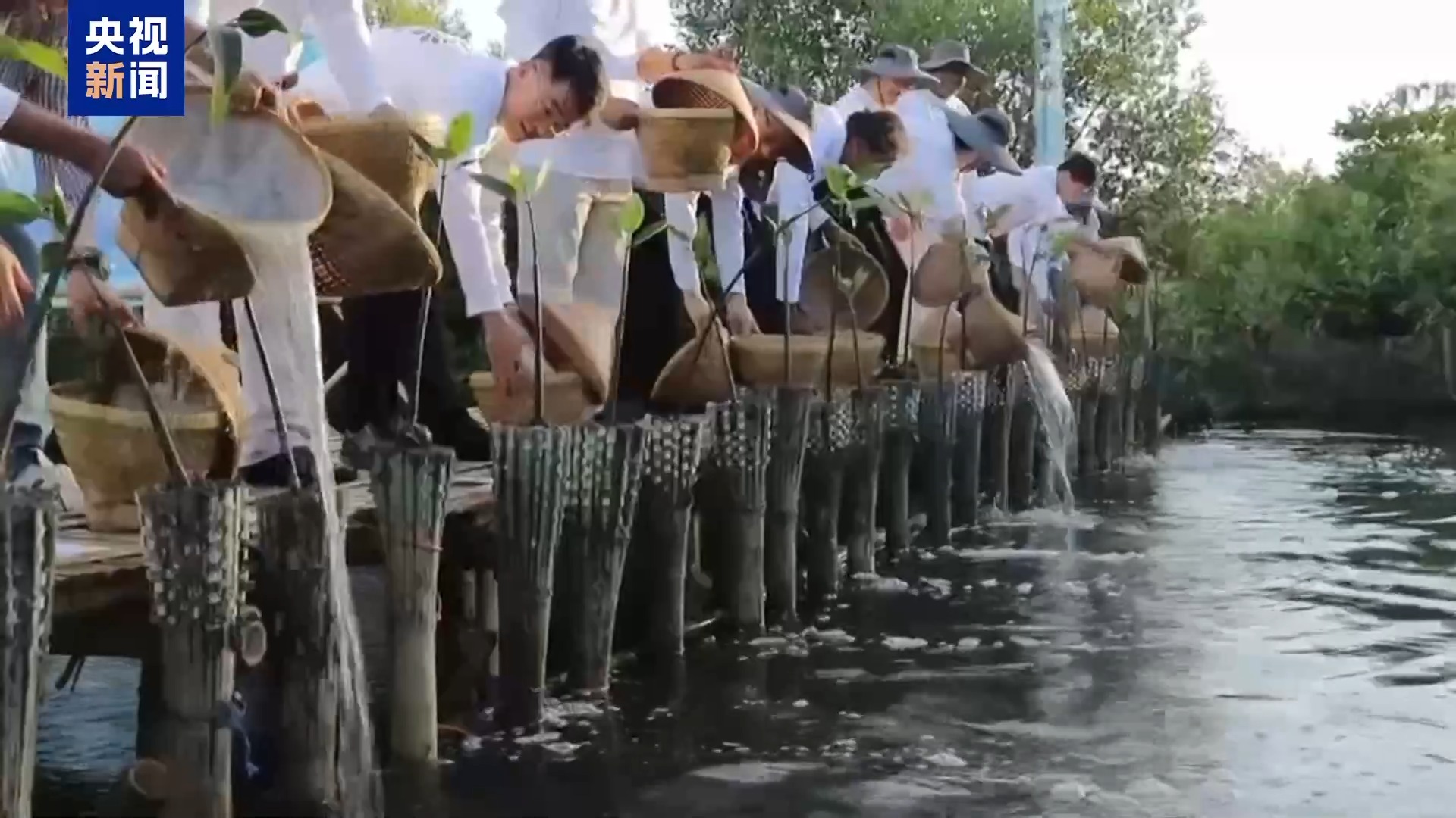 就在記者探訪的當天,又一批紅樹苗被種入沿海灘涂。這樣的生態(tài)投入也帶來了民生收益,周邊居民有了新的就業(yè)機會,漁業(yè)資源也逐漸恢復,越來越多珍稀野生動物在此安家。