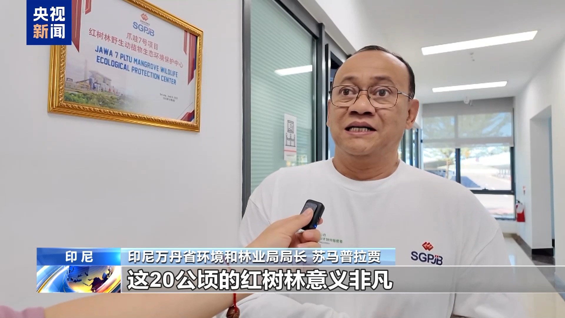 總臺記者 李琳:我現(xiàn)在所在的位置是印尼(單機容量)最大的火力發(fā)電廠。我現(xiàn)在所在的這個平臺有80米高。從我身后大家可以看到一大片紅樹林和電廠是和諧共生。那么在最開始,這片紅樹林只有5公頃的面積,而隨著企業(yè)不斷地種植,現(xiàn)在已經達到了20公頃。