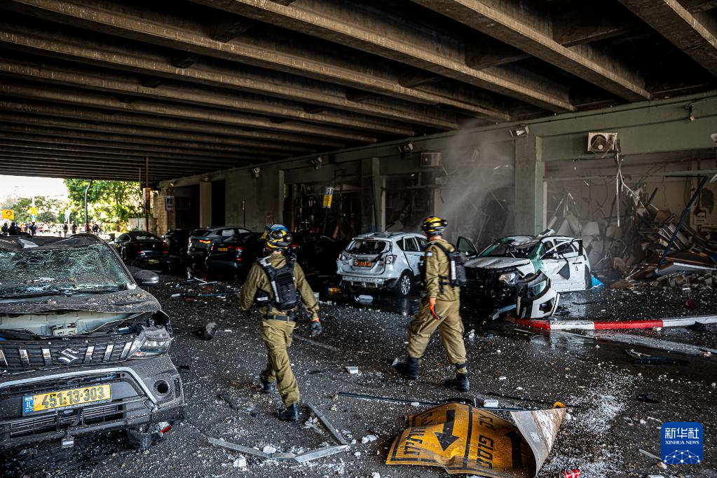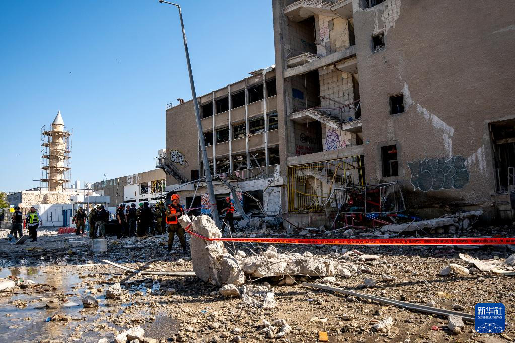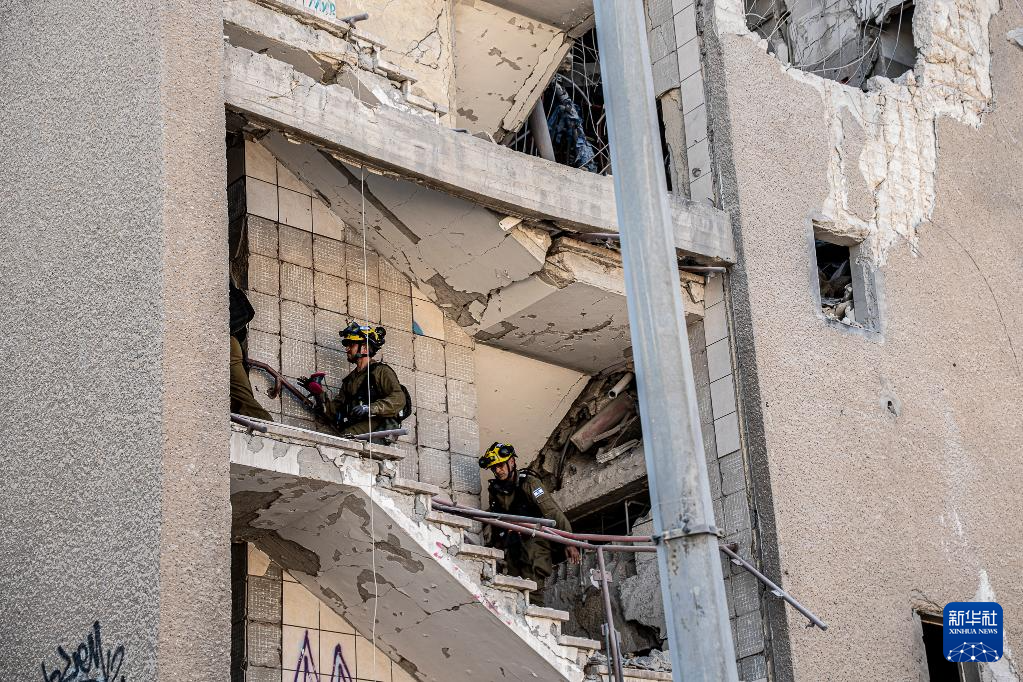 6月20日,安全和救援人員在以色列北部海法的導(dǎo)彈襲擊現(xiàn)場(chǎng)工作。新華社/基尼圖片社