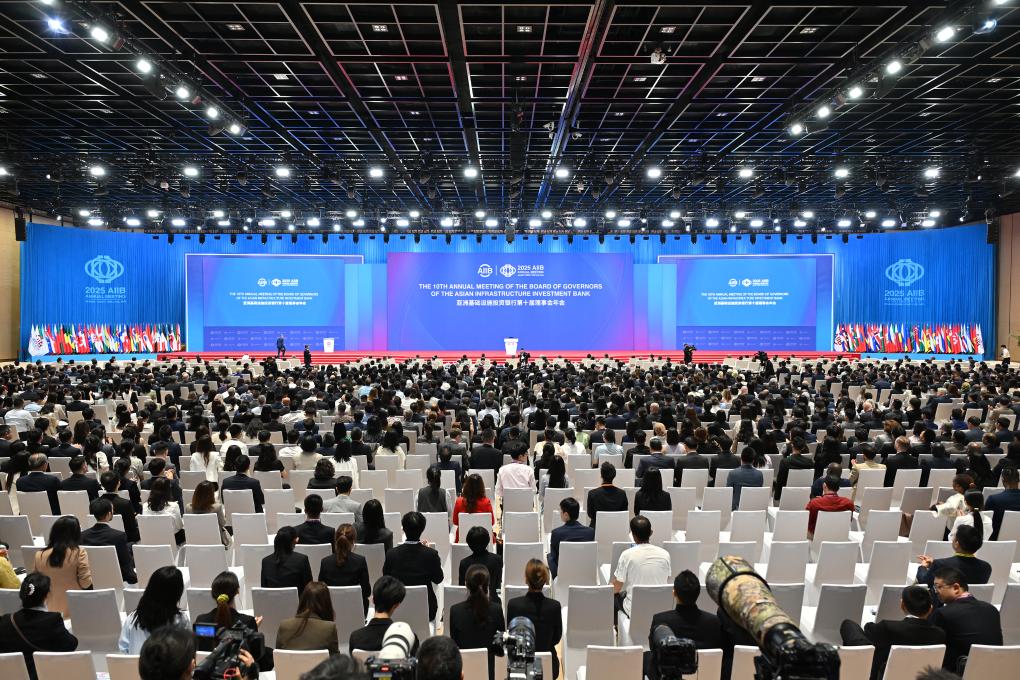 這是6月26日拍攝的亞洲基礎(chǔ)設(shè)施投資銀行第十屆理事會(huì)年會(huì)開(kāi)幕式現(xiàn)場(chǎng)。新華社記者李鑫攝