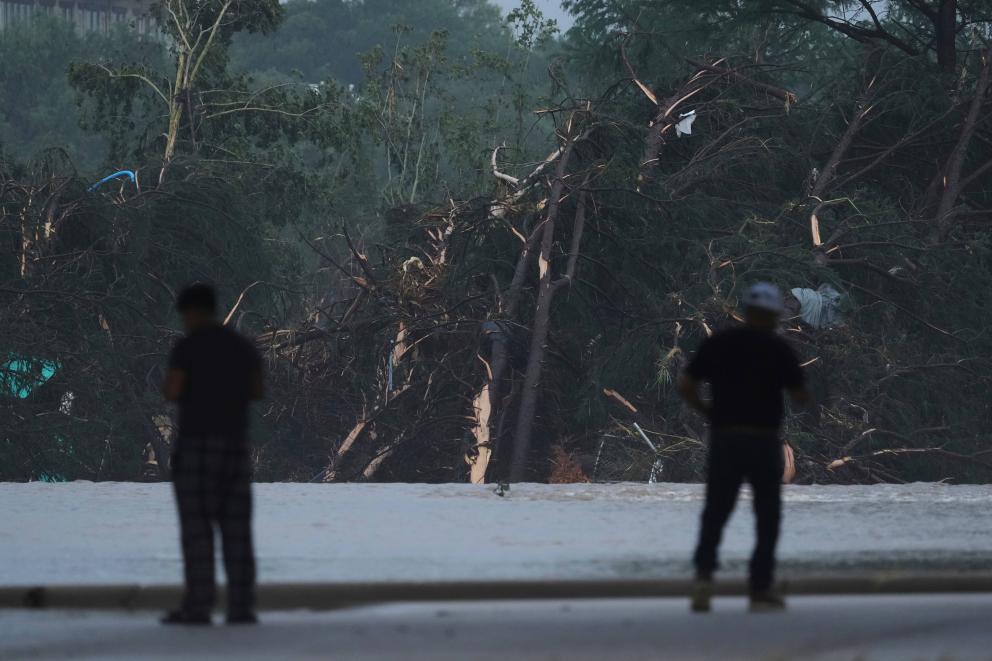 7月4日,在美國得克薩斯州英格勒姆市,人們在瓜達(dá)盧普河沿岸查看。新華社/美聯(lián)