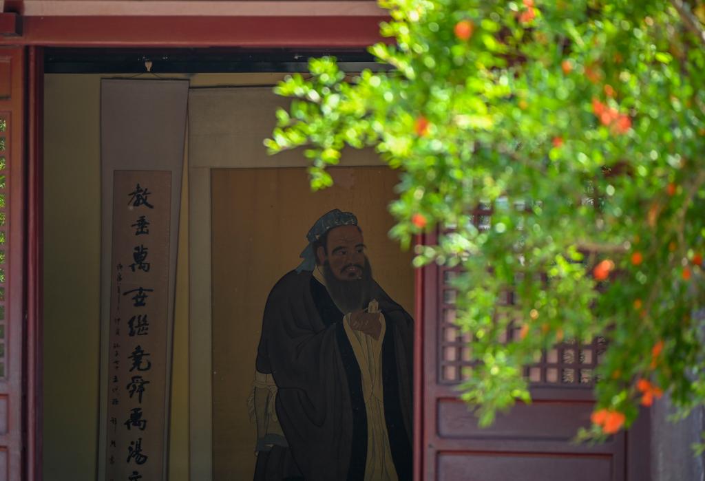 尼山孔廟及書院景區(qū)的孔子像(5月21日攝)。新華社記者 陳朔 攝