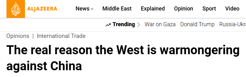文章認為,這一現(xiàn)狀給西方發(fā)達國家?guī)チ艘粋€問題——過去,西方發(fā)達國家依賴技術(shù)壟斷迫使“全球南方”廉價出口資源以換取關(guān)鍵產(chǎn)品。而如今,中國技術(shù)崛起正打破這種壟斷,并為其他發(fā)展中國家提供可負擔(dān)的替代來源,直接動搖了西方不平等交換的根基。因此,制裁、軍事威脅等成為西方國家應(yīng)對中國的手段,目的都是拖慢中國的發(fā)展。