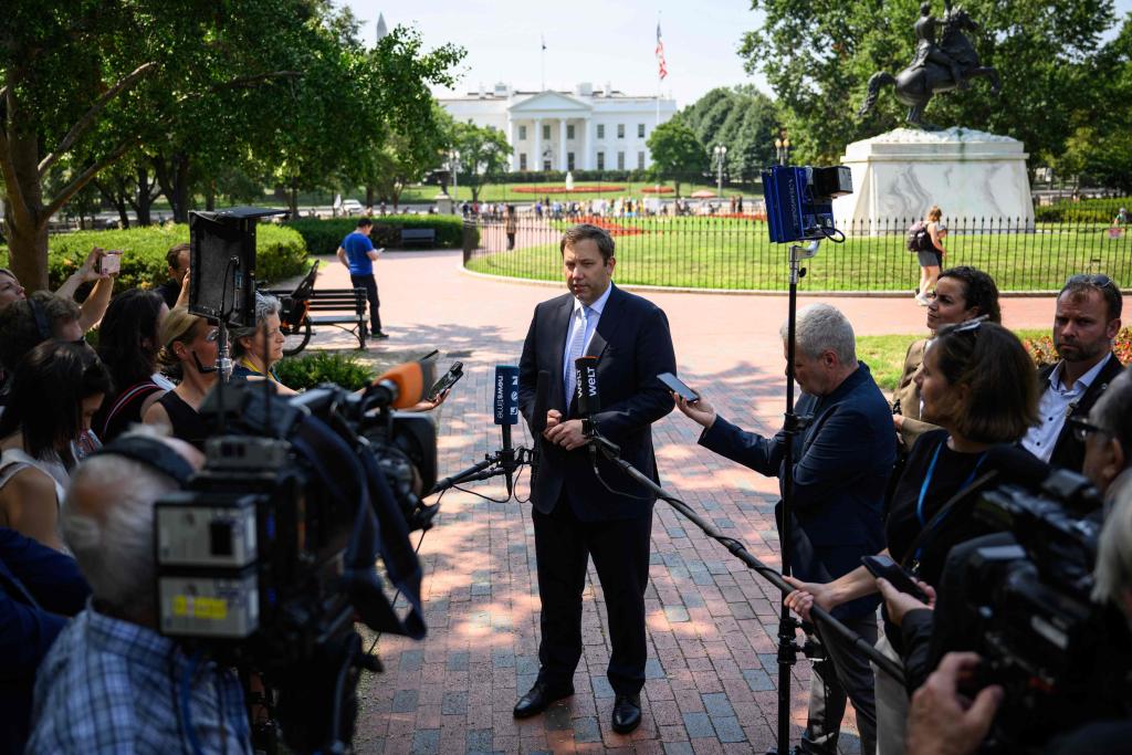 8月4日,德國(guó)副總理兼財(cái)政部長(zhǎng)克林拜爾在華盛頓會(huì)見(jiàn)記者。新華社/法新