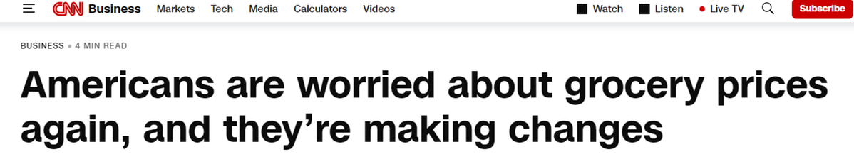 報道還指出,民調(diào)清晰地表明美國人對高昂的食品成本和經(jīng)濟(jì)狀況倍感焦慮,他們的購物方式也因此出現(xiàn)巨大改變。這與眾多企業(yè)提到的情況一致,他們表示消費(fèi)者正在調(diào)整購物模式,比如從購買大包裝改成買小包裝,只買生活必需品,更多地在家吃飯。