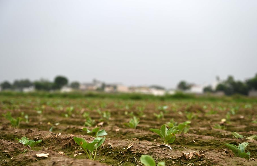 巴基斯坦旁遮普省的阿托克區(qū)土地里正在生長(zhǎng)的中國花椰菜幼苗。(圖片來源:新華社)