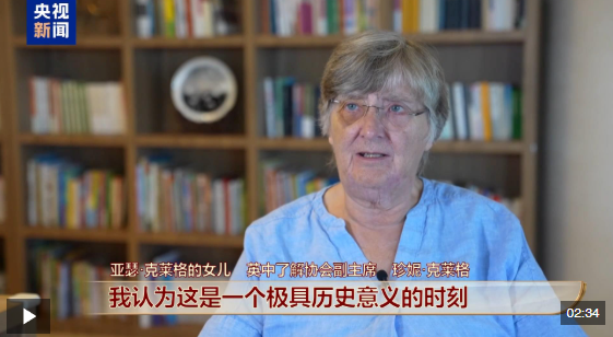 英中了解協(xié)會副主席珍妮·克萊格是亞瑟·克萊格的女兒。她的父親1937年在英國成立“英國援助中國運動委員會”,旨在促進與中國團結(jié)一致抗擊日本侵略。