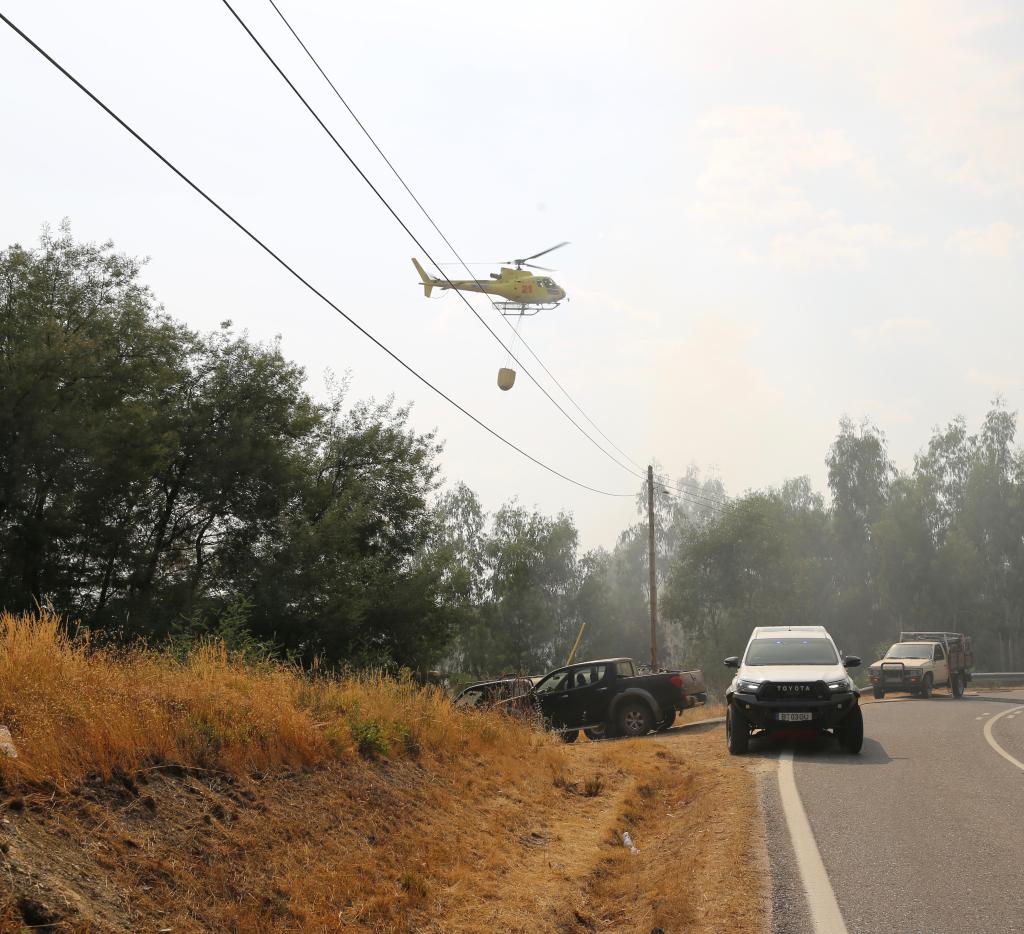 8月22日,在葡萄牙烏尼艾什-迪塞拉附近,消防人員和直升機(jī)緊急撲滅一處起火點(diǎn)。新華社記者荀偉攝