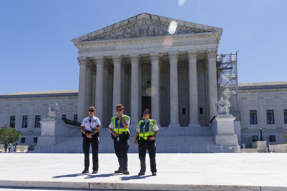 2024年7月1日,警察在美國(guó)首都華盛頓的美國(guó)聯(lián)邦最高法院前執(zhí)勤。新華社發(fā)(亞倫攝)
