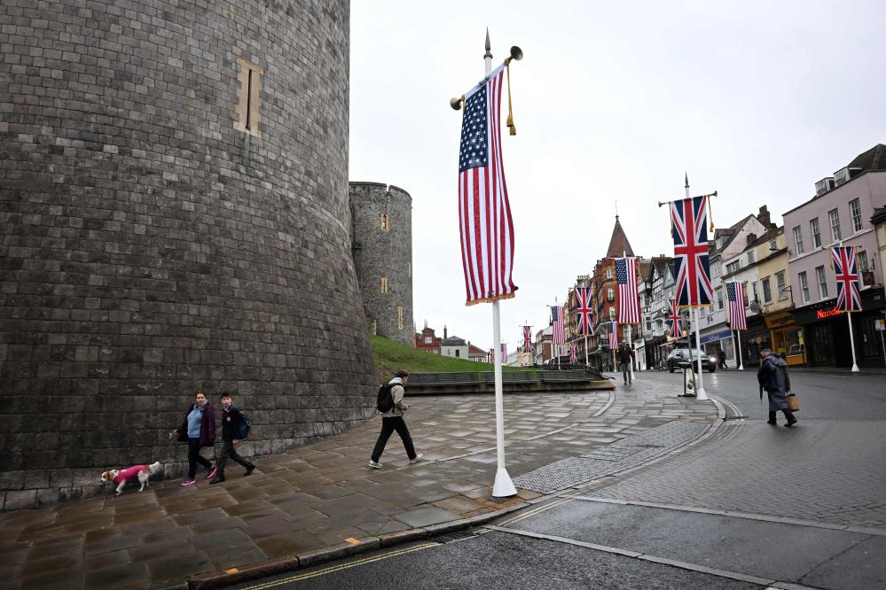 這是9月17日在英國(guó)倫敦近郊的溫莎城堡外拍攝的美國(guó)國(guó)旗和英國(guó)國(guó)旗。新華社/法新