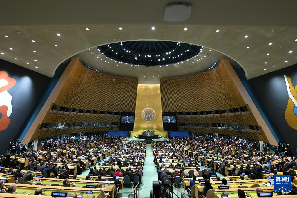9月23日,在位于紐約的聯(lián)合國總部,第80屆聯(lián)大主席貝爾伯克(中)主持第80屆聯(lián)合國大會一般性辯論開幕式。新華社記者吳曉凌攝