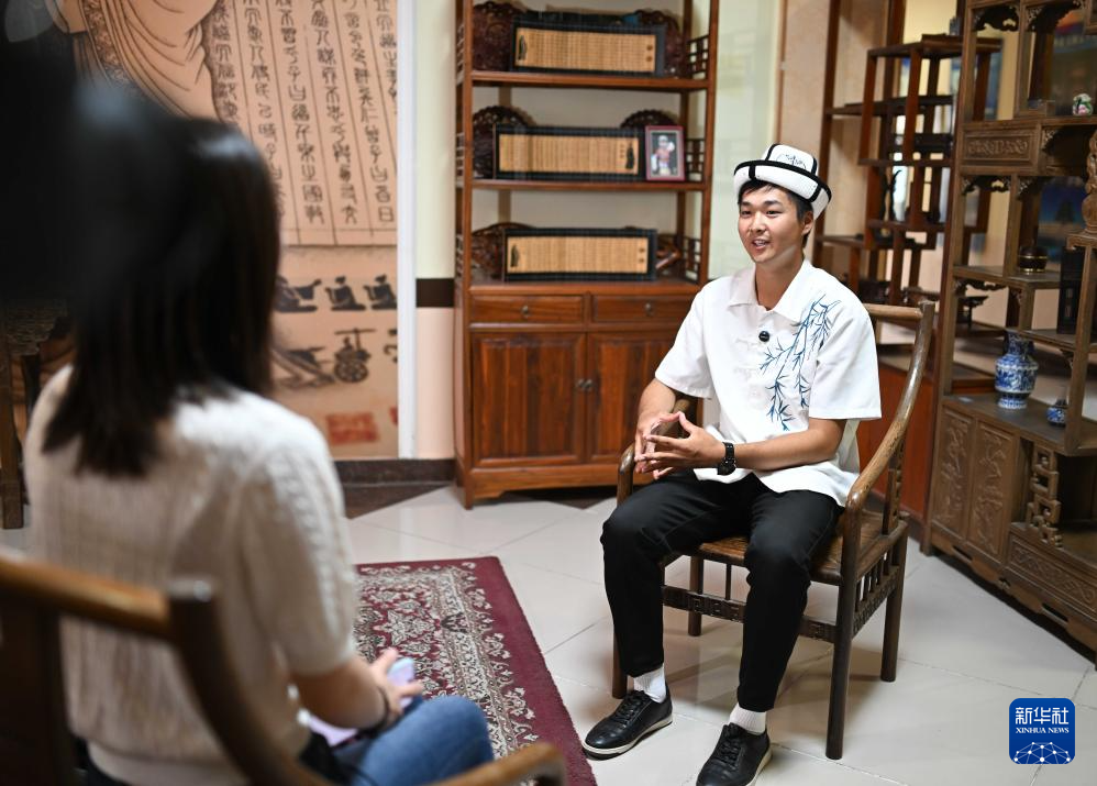 9月18日,在吉爾吉斯斯坦奧什國立大學(xué)孔子學(xué)院,學(xué)生克爾季巴耶夫接受新華社記者采訪。新華社記者 李任滋 攝