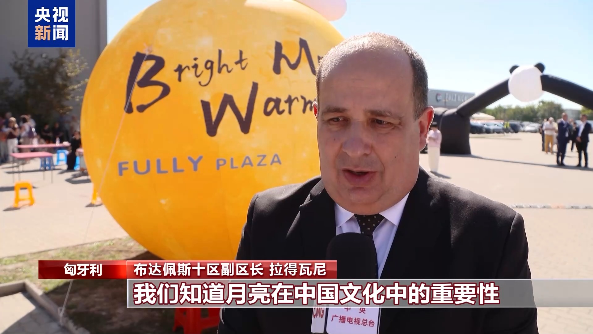匈牙利布達(dá)佩斯十區(qū)副區(qū)長 拉得瓦尼:我們知道月亮在中國文化中的重要性,這個(gè)時(shí)候兩國人民應(yīng)該一起吃月餅。盡管中國文化與匈牙利文化不同,但我們兩國民眾都彼此敞開心胸,希望了解對(duì)方的文化。