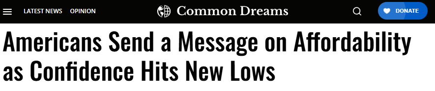 “基層合作組織”(Groundwork Collaborative)政策與倡導(dǎo)部門(mén)主管亞歷克斯·雅克茲指出,美民眾對(duì)經(jīng)濟(jì)的信心下滑源于實(shí)際生活壓力的加重。他認(rèn)為,當(dāng)前政府在經(jīng)濟(jì)管理上未能有效改善民生,反而導(dǎo)致家庭債務(wù)創(chuàng)下新高,物價(jià)不斷上漲,信心指數(shù)自然跌至低谷。