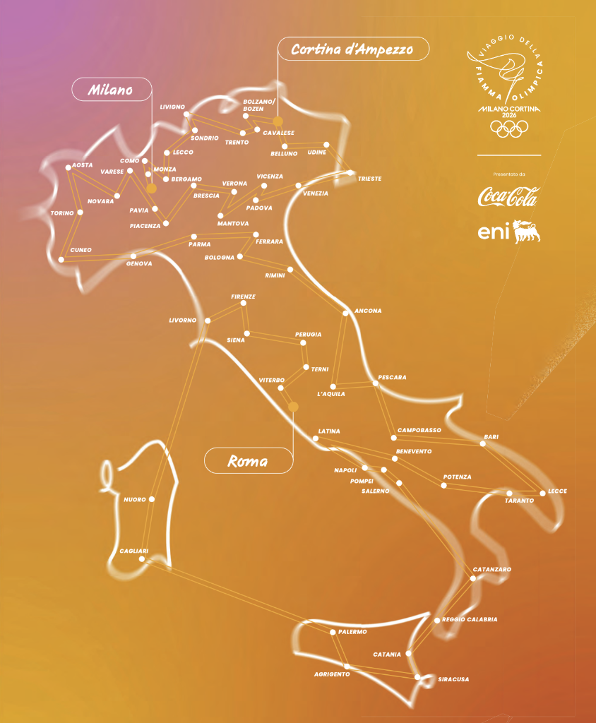 米蘭冬奧會(huì)火炬?zhèn)鬟f路線(xiàn)圖。圖源:米蘭冬奧組委
