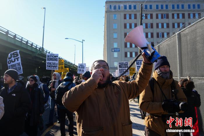 當(dāng)天,在位于紐約布魯克林區(qū)的拘押委內(nèi)瑞拉總統(tǒng)馬杜羅的大都會(huì)拘留中心外圍,大批民眾高舉“勿對(duì)委內(nèi)瑞拉開(kāi)戰(zhàn)”“停止轟炸委內(nèi)瑞拉”等標(biāo)語(yǔ),反對(duì)美國(guó)襲擊委內(nèi)瑞拉。