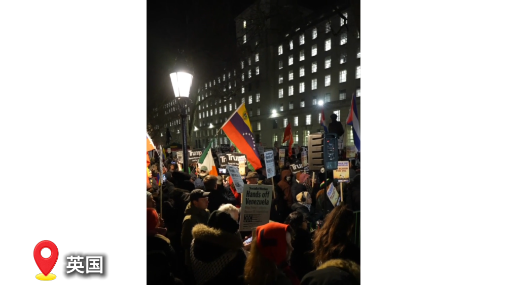 當(dāng)?shù)貢r(shí)間5日晚,大量民眾聚集在英國(guó)首相官邸唐寧街10號(hào),抗議美國(guó)對(duì)委內(nèi)瑞拉的軍事打擊,要求英國(guó)首相斯塔默譴責(zé)美方行動(dòng)。