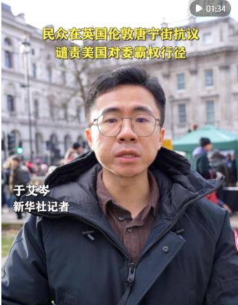 當?shù)貢r間10日下午,大批民眾聚集在英國首相官邸唐寧街10號門外,抗議美國對委內(nèi)瑞拉的軍事打擊。這是自美國襲擊委內(nèi)瑞拉并強行帶走馬杜羅夫婦后,倫敦發(fā)生的第四次相關的抗議事件。