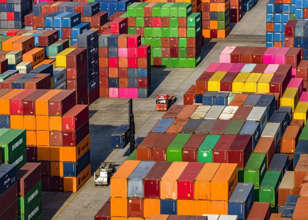 2025年12月8日拍攝的南京港龍?zhí)陡蹍^(qū)集裝箱堆場(chǎng)(無(wú)人機(jī)照片)。新華社發(fā)(辛一攝)