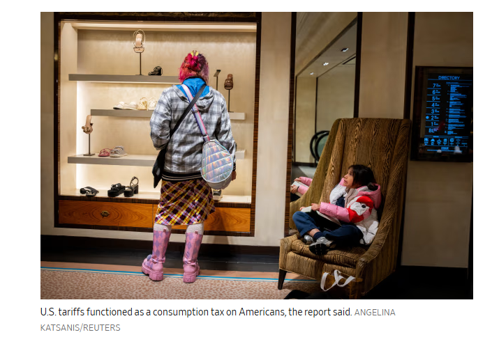 報告稱,美國關(guān)稅實(shí)際上相當(dāng)于對美國民眾征收消費(fèi)稅。路透社報道截圖