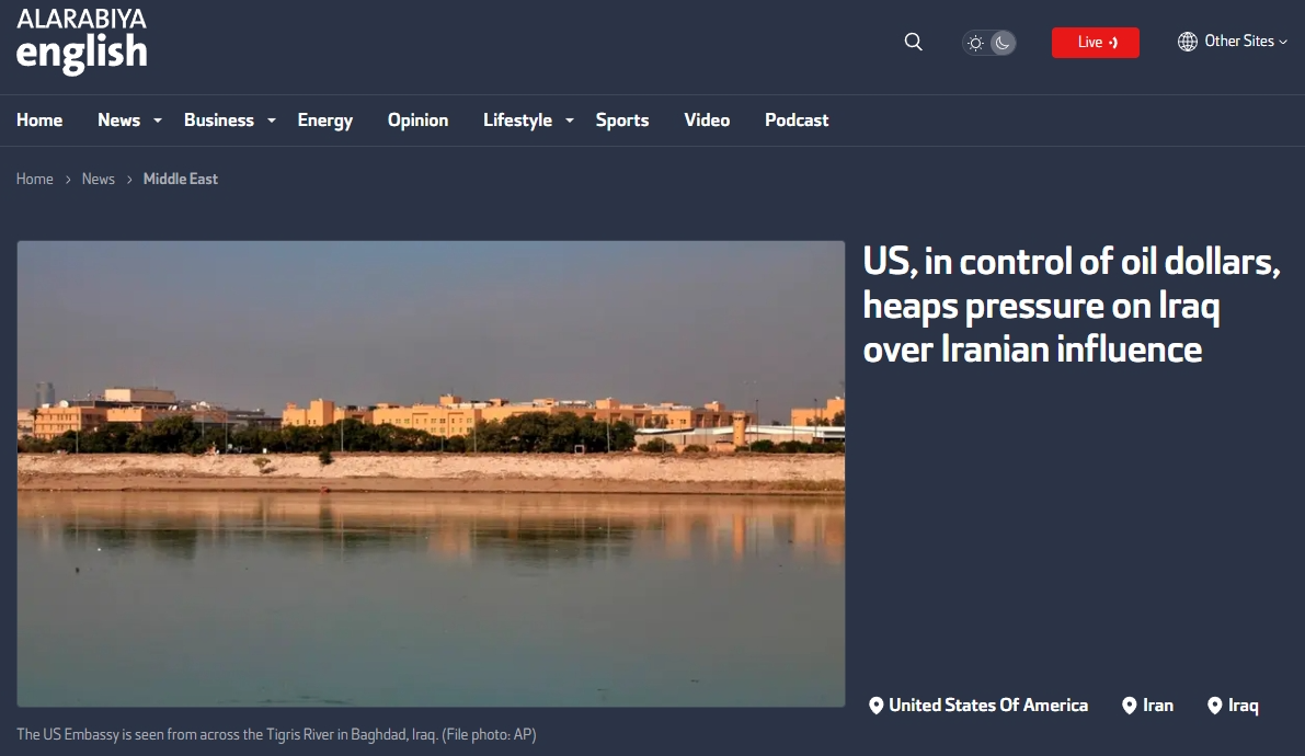 據(jù)多家媒體日前報(bào)道,當(dāng)伊拉克政府要求美軍在2020年撤離伊拉克時(shí),美國(guó)就曾威脅要切斷伊拉克獲得石油收入的渠道,當(dāng)時(shí)伊方被迫作出了讓步。如今,美國(guó)又因?yàn)橐晾实囊蛩赝{制裁伊拉克,其中就包括“通過(guò)紐約聯(lián)邦儲(chǔ)備銀行獲得的重要石油收入”。