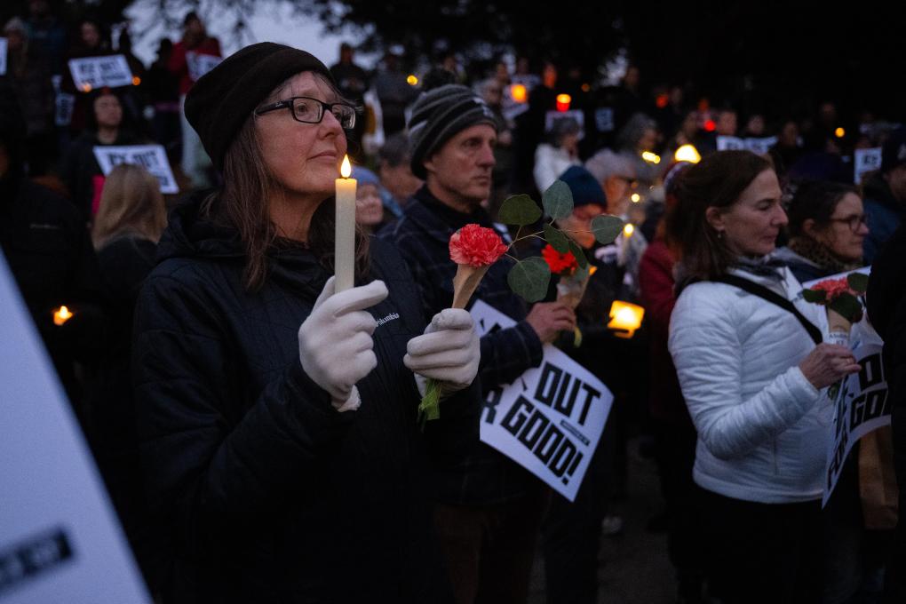 2026年1月25日,在美國加利福尼亞州舊金山,人們?yōu)閬啔v克斯·普雷蒂舉行燭光悼念活動。新華社發(fā)(朱子于攝)