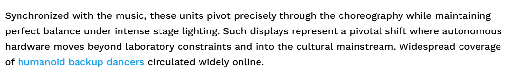 英國在線媒體“智能生活”網(wǎng)站報道說,人形機器人亮相春晚進行這類展示,標志著一個關(guān)鍵的轉(zhuǎn)變:自動化硬件正走出實驗室的限制,進入文化主流。這種文化轉(zhuǎn)變大大降低了將機器人引入工廠、商場和交通樞紐的障礙。文章分析,機器人已成為中國工業(yè)格局的基礎(chǔ)組成部分。目前,中國在年度工業(yè)機器人安裝量上超過所有其他國家。這在大型車企和電子工廠中最為明顯,那里有重型機械臂進行高速裝配和噴漆作業(yè),也存在于新興自動化模塊化工廠里。