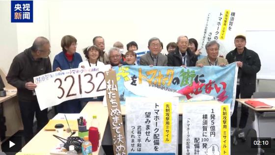 日本橫須賀市市民團(tuán)體代表 新倉裕史:我們這幾個城市都有日本海上自衛(wèi)隊的基地。二戰(zhàn)結(jié)束,日本戰(zhàn)敗之后,日本擁有了和平憲法,也決定今后要走和平道路。但現(xiàn)在這幾個港口城市又和80多年前一樣,成為以軍事優(yōu)先的海軍基地,“戰(zhàn)斧”導(dǎo)彈的部署就說明了這一點。我們希望能夠設(shè)法阻止“戰(zhàn)斧”巡航導(dǎo)彈的部署。