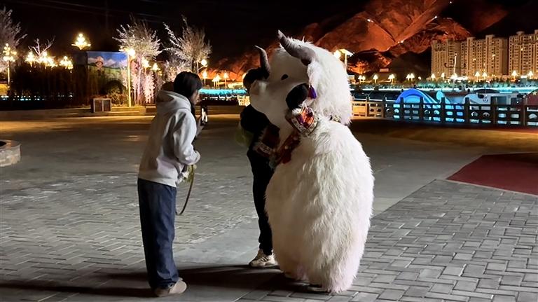 作為拉薩河夜游的核心亮點(diǎn)之一,“牦牛天團(tuán)”一經(jīng)登陸濱河公園碼頭及游船沿線,便憑借圓潤(rùn)造型與靈性互動(dòng)圈粉無(wú)數(shù)。游客們紛紛與這些象征吉祥快樂(lè)的高原“萌獸使者”合影留念,小朋友們追著玩偶舞步歡笑奔跑,相關(guān)打卡視頻在社交平臺(tái)快速傳播,話題瀏覽量短時(shí)間內(nèi)突破千萬(wàn)量級(jí)。夜幕下,牦牛玩偶的暖色調(diào)身影與游船舷燈、沿岸燈光秀交相輝映,構(gòu)成“船在水中走,人在畫(huà)中游,萌獸身邊繞”的獨(dú)特景致,讓45分鐘的夜游路線充滿驚喜。