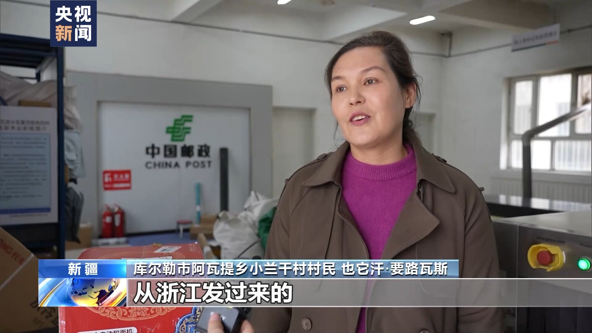庫爾勒市阿瓦提鄉(xiāng)小蘭干村村民 也它汗·要路瓦斯:我在網(wǎng)上買了一個(gè)和面機(jī),從浙江發(fā)過來的。過去拿快遞只能到鄉(xiāng)里,現(xiàn)在直接到家門口,當(dāng)天我就拿到手。