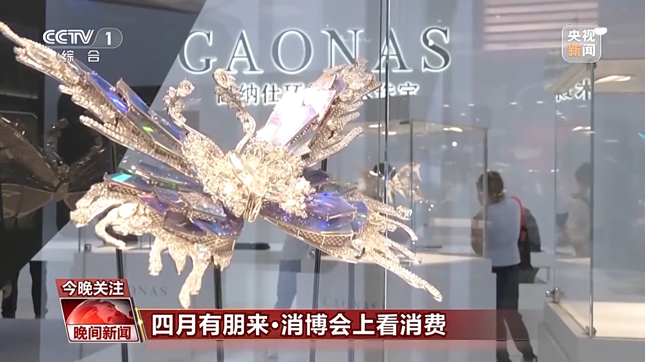 在這個珠寶藝術品的展臺,8只由AI設計的蝴蝶翩翩起舞,為觀眾帶來了新奇的體驗,也展示了科技在珠寶設計中的無限可能。