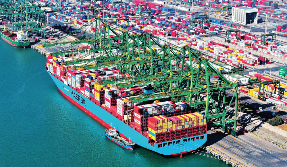 貨輪靠泊在天津港北航道內(nèi)的泊位中(2024 年 3 月 20 日攝)趙子碩攝 / 本刊