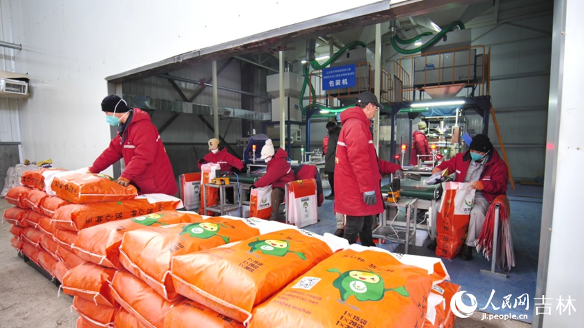 坐落于公主嶺市的長春國家農(nóng)業(yè)高新技術(shù)產(chǎn)業(yè)示范區(qū)現(xiàn)代種業(yè)產(chǎn)業(yè)園內(nèi),顆粒飽滿的玉米種子經(jīng)風篩、灌袋、包裝等流水作業(yè)后,走向市場。
