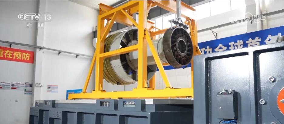 眼前這臺(tái)正在保持高頻振動(dòng)的設(shè)備在對(duì)一臺(tái)近3噸重的飛機(jī)發(fā)動(dòng)機(jī)進(jìn)行振動(dòng)試驗(yàn)。在此之前,沒(méi)有設(shè)備可以完成這個(gè)重量等級(jí)的整機(jī)振動(dòng)試驗(yàn)。