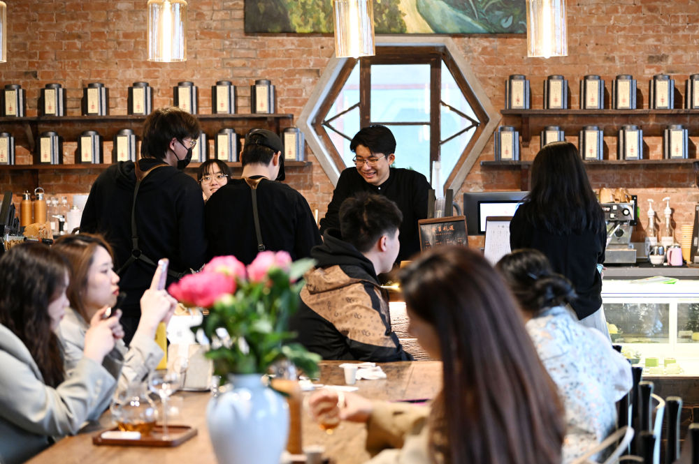 在天津市和平區(qū)五大道,一家新開業(yè)的茶飲店內(nèi)顧客絡(luò)繹不絕(4月10日攝)。