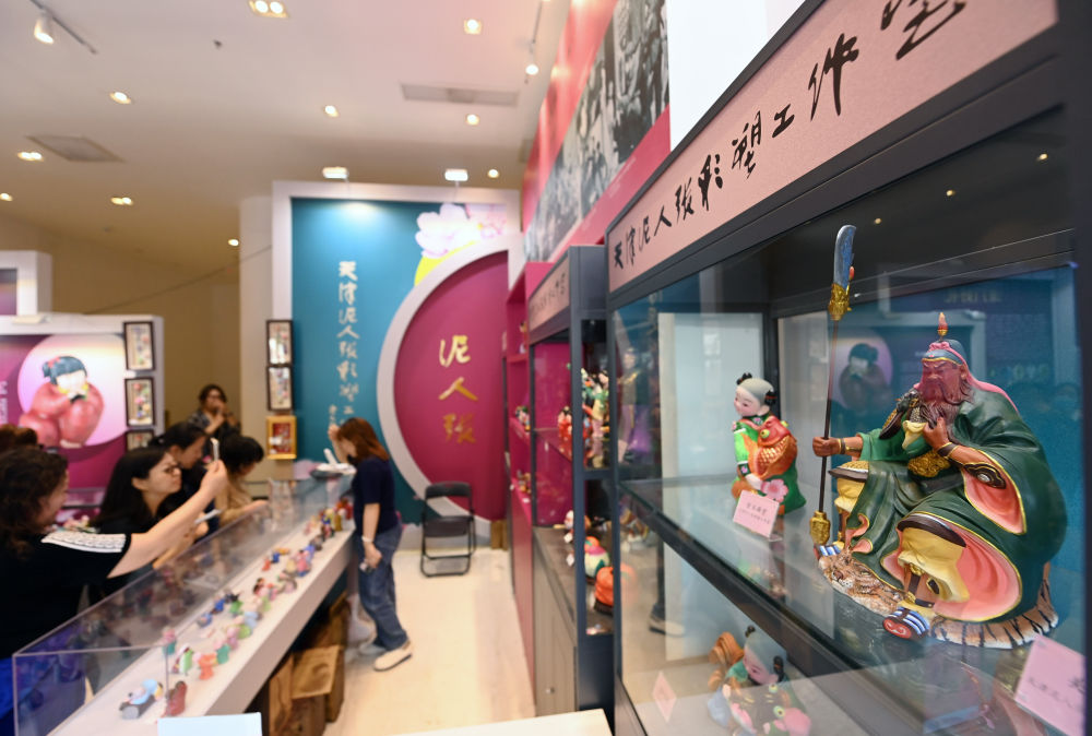 游客在位于天津五大道的一家“泥人張”店鋪內(nèi)選購(4月13日攝)。