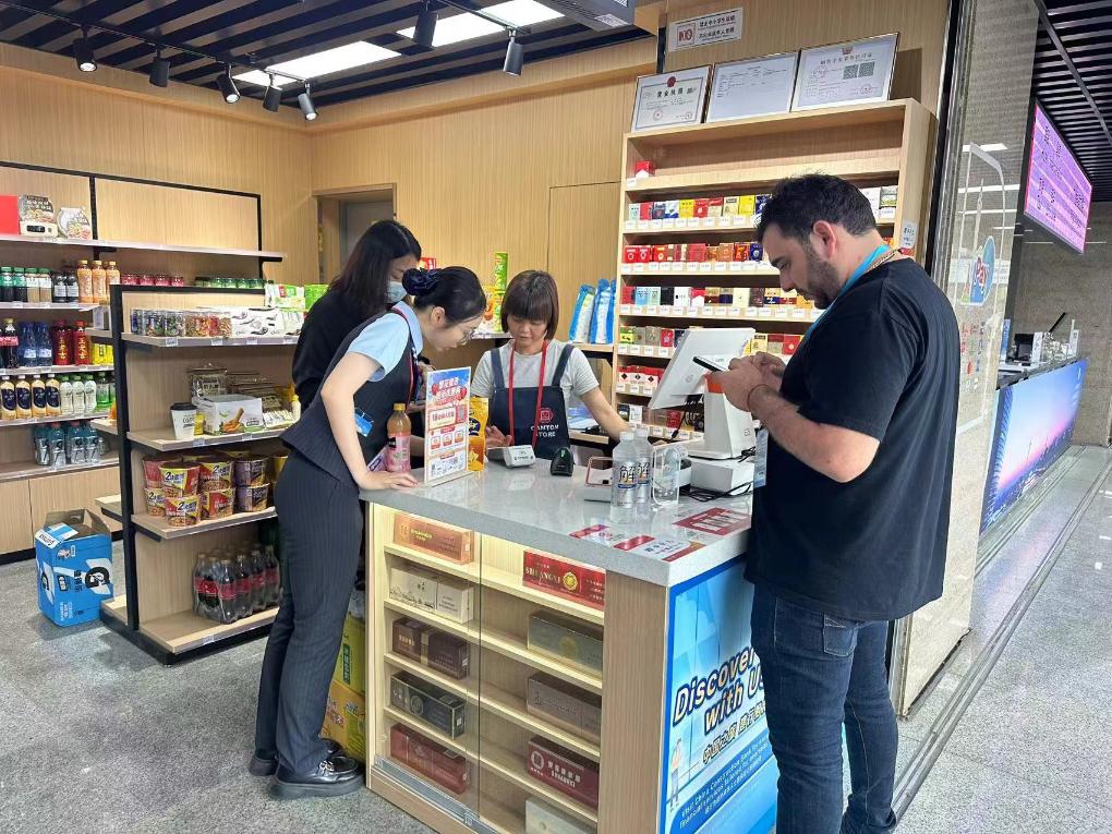 場(chǎng)館外,支付便利化措施早已全方位鋪開。從入境廣州開始,白云國際機(jī)場(chǎng)的醒目位置設(shè)有境外來賓支付服務(wù)咨詢臺(tái),多語種宣傳相關(guān)政策,現(xiàn)場(chǎng)指引入境人員開通電子支付?!拔覀円龑?dǎo)商鋪支持使用帶有Visa、Master、美國運(yùn)通等標(biāo)識(shí)的國際標(biāo)準(zhǔn)化信用卡,機(jī)場(chǎng)商鋪外卡POS機(jī)做到至少‘一鋪一臺(tái)’?!睆V州市商務(wù)局相關(guān)負(fù)責(zé)人介紹。