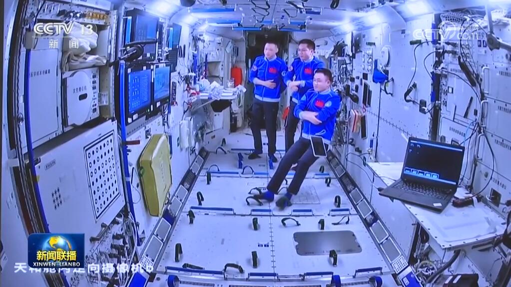 正在空間站執(zhí)行任務(wù)的神舟十七號(hào)乘組在軌觀看神舟十八號(hào)載人飛行任務(wù)新聞發(fā)布會(huì)和記者見面會(huì)。