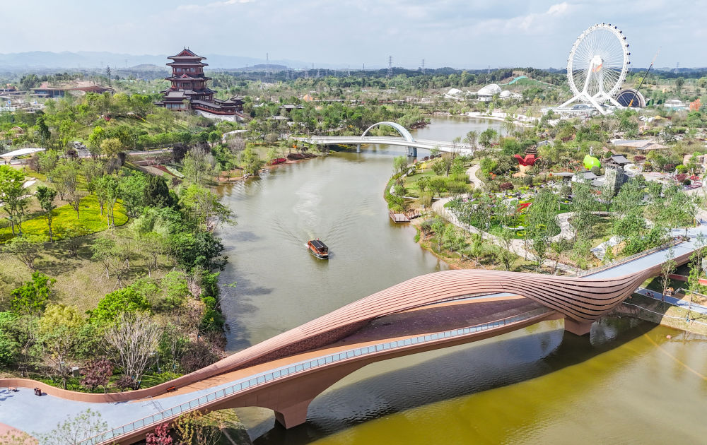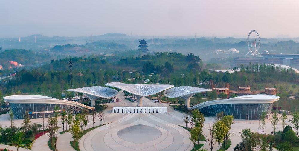 窗含千秋,門泊萬(wàn)里。從空中俯瞰,2024年成都世界園藝博覽會(huì)主會(huì)場(chǎng)如同一朵盛放的芙蓉花,迎接世界各方賓朋。